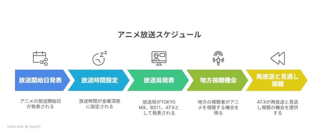 金曜深夜アニメ枠として編成されており、アニメファンにとっては視聴しやすい時間帯です。